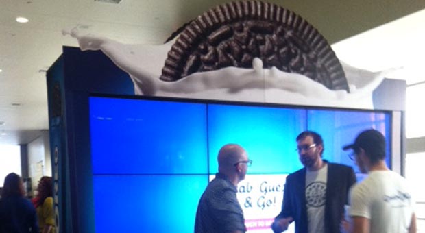 The most interesting set up comes from Oreo, a first time SXSW sponsor. Not only do they entice people to grab some oreos, they engage the crowd with their interactive screens and game play. When playing, a person has their photo taken and it is super-imposed with an environment in Austin. They need to guess where they are for a chance to win a gift card to that place. But even if you don’t guess correctly, Oreo doesn’t let you walk away empty handed – with Oreos and Wireless phone chargers.