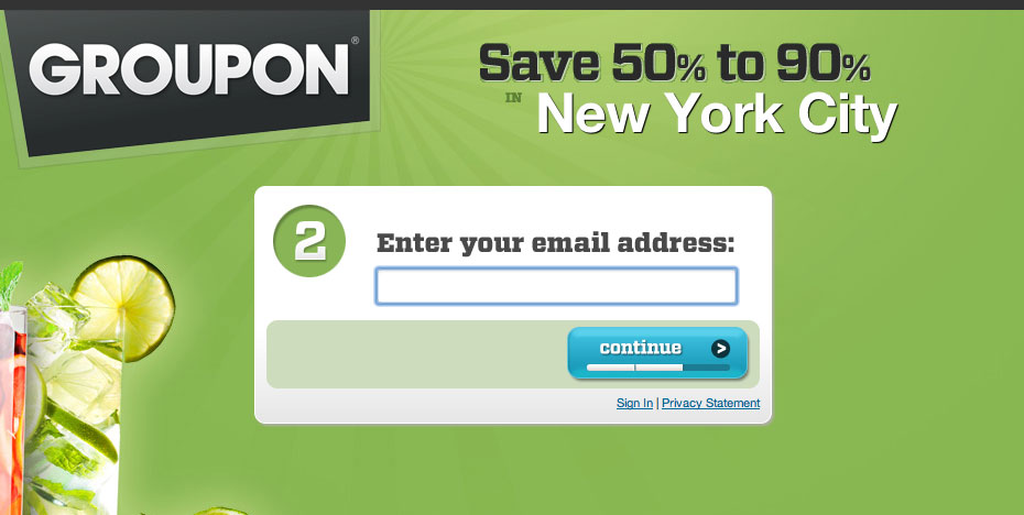 Got a popular website? Build a mailing list component. Make it highly visible. Going “above the fold” increases the chances people will happen upon it. Also, make it easy to use. Place as few fields in the component as possible. In the snapshot below, Groupon has a large, intuitive, and simple mailing list callout. The user has to only designate an email address and a city and they’re in. No difficult questions, no invasive requests, no intimidating forms that send their users running for the hills.
